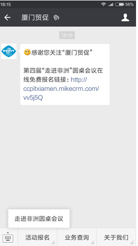 1)添加微信公眾號“廈門貿(mào)促”